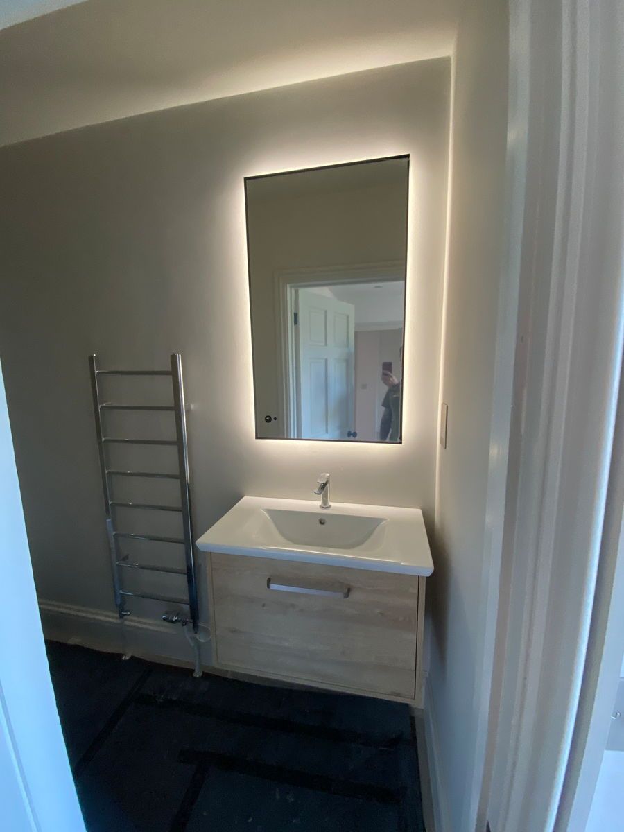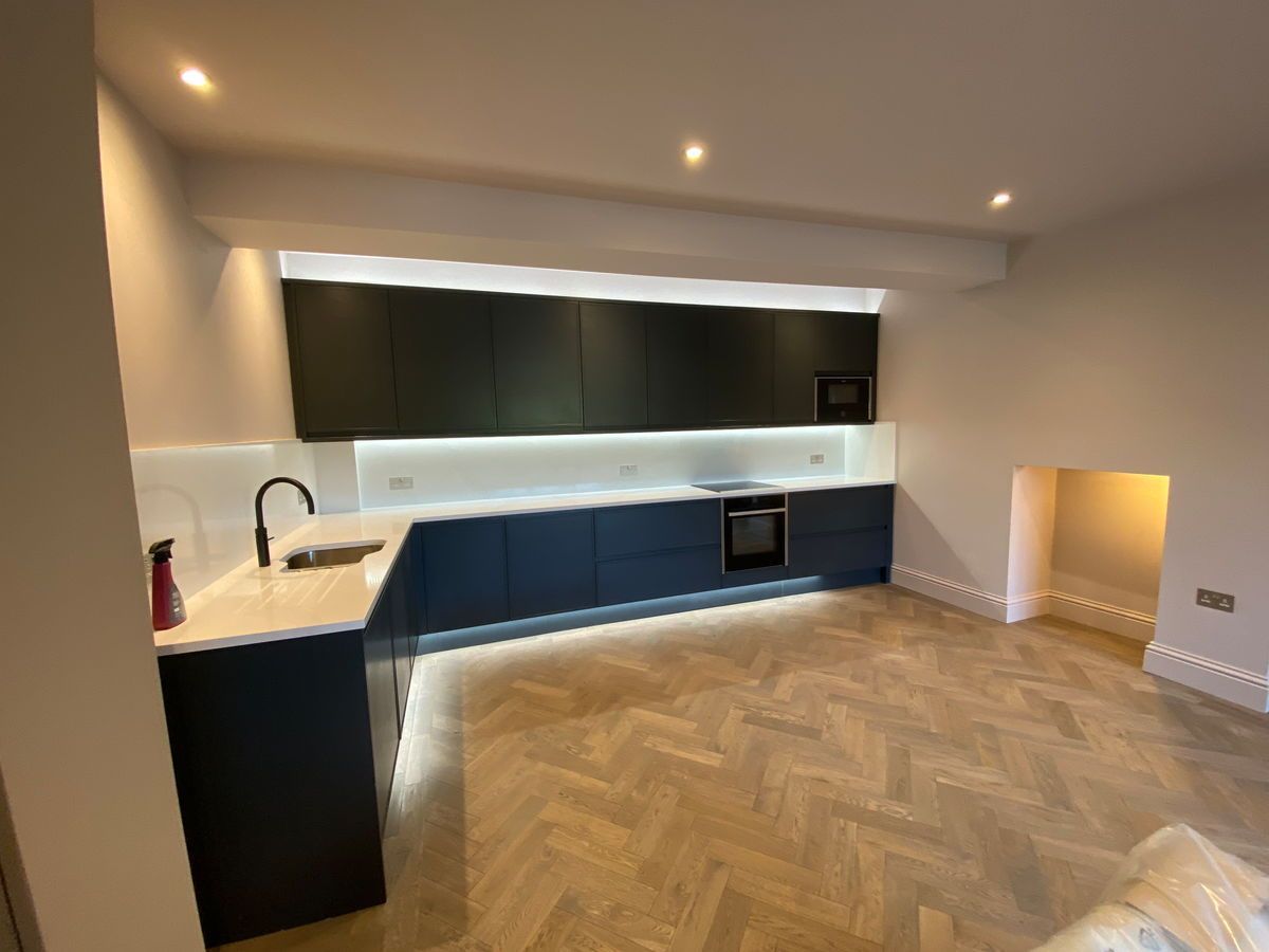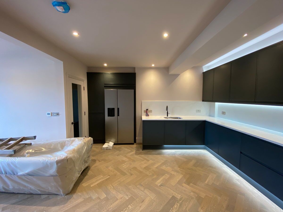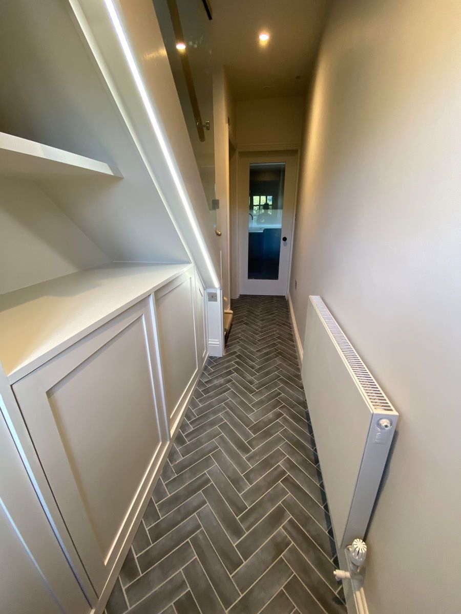 This two storey apartment in Devon Road was completely renovated throughout. Load bearing walls were removed, new steels added, bi-fold aluminium doors, cantilever balcony, custom stair case glass with bespoke handrails and built in utility area with nifty hide n slide doors. We also carried out a full bathroom and kitchen installation with new flooring and professionally decorated throughout.
